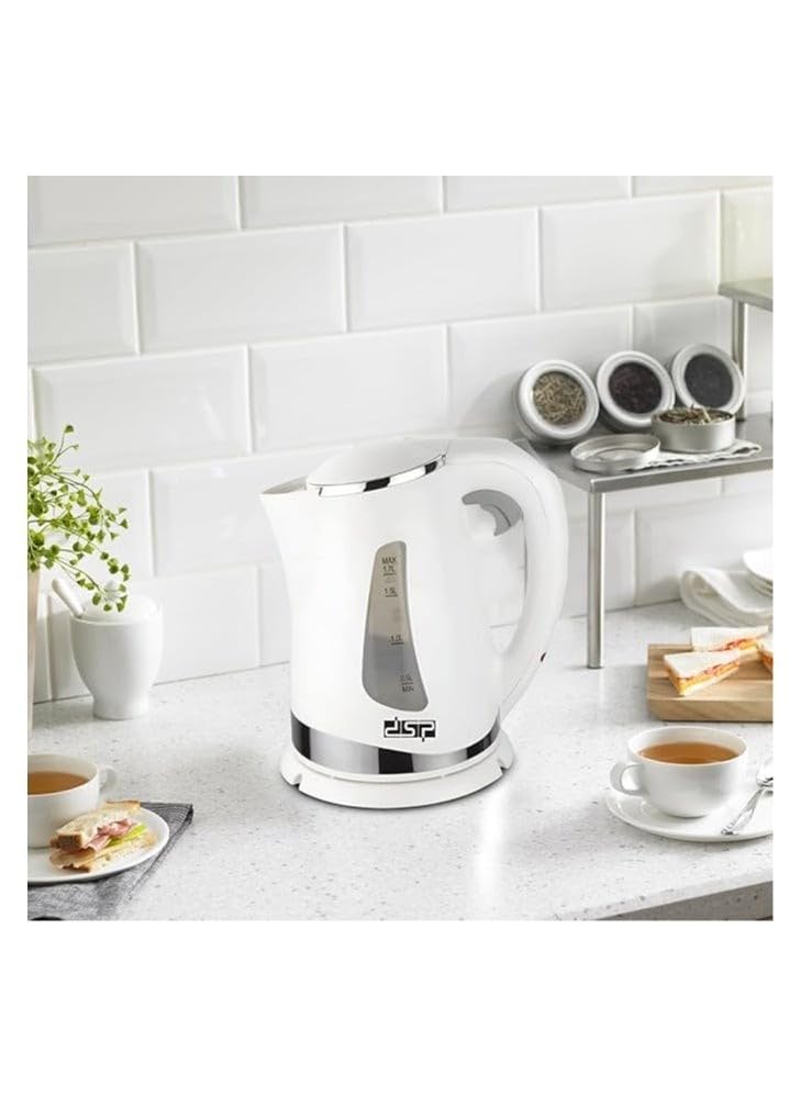 DSP - غلاية كهربائية 2200 وات سعة 1 لتر مصنوعة من هيكل صلب بفلتر قابل للإزالة من دي اس بي، مزودة بعنصر تسخين صلب ومؤشر إضاءة وحماية من الغليان عند جفاف الماء، إيقاف تلقائي، وقاعدة دوارة - موديل KK1110
