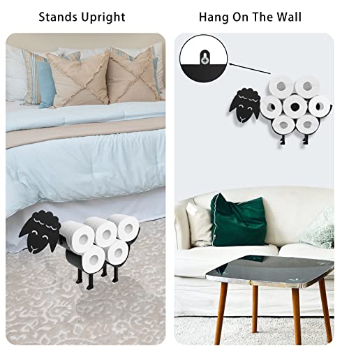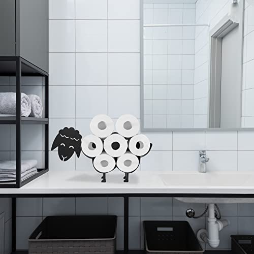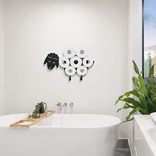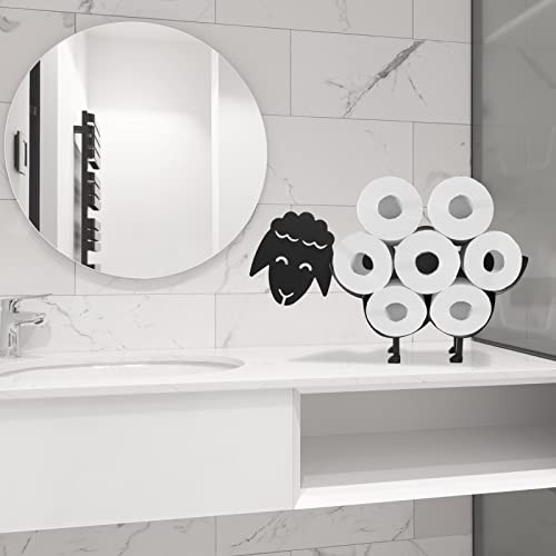 DSVENROLY - حامل مناديل تواليت معدني على شكل خروف بتصميم قائم بذاته ويثبت على الحائط مبتكر للحمام، يتسع حتى 7 بكرات من دسفنرولي، (أسود)