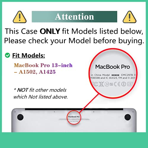 - 【رقم الموديل المناسب】يرجى التأكد من أن رقم الموديل هو "A1502" أو "A1425" في الجزء السفلي من جهاز ماك بوك برو قبل الشراء. ❌تحذير: هذه الحافظة غير متوافقة مع ماك بوك برو 13 انش مع/بدون شريط لمس وإصدار معرف اللمس في موديلات 2016-2023 M2 M1 A2338 A2289 A2251 A2159 A1989 A1706 A1708.