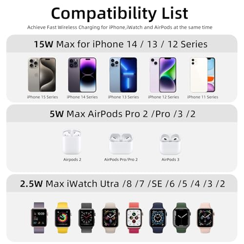 - 【توافق واسع】شاحن لاسلكي مغناطيسي يدعم الشحن اللاسلكي لسلسلة 15/14/13/12. متوافق أيضًا مع ساعة ابل 9/الترا 2/الترا/8/7/6/اس اي/5/4، ايربودز 2/3/برو.