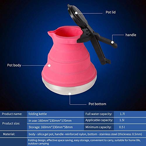 DU - غلاية سيليكون محمولة قابلة للطي بسعة 1.5 لتر، غلاية ماء مغلي ووعاء قهوة للتخييم والمشي لمسافات طويلة والاستخدام في الأماكن الداخلية (لون أزرق)