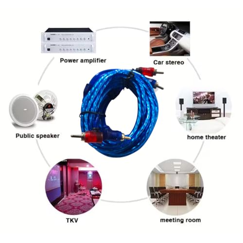 Generic - كابل صوت مزدوج ، كابل صوت ستيريو، تصميم مقاوم للتشابك ار سي زاوية قائمة 90 درجة بلون أزرق وطول 4 متر، كابل صوت استريو للسيارة والمنزل