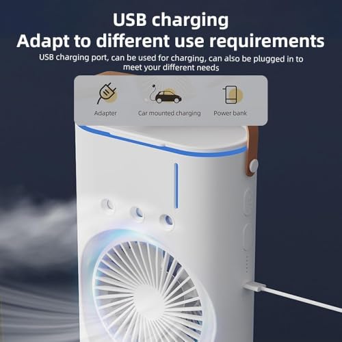 Generic - مروحة تبريد برذاذ مزدوجة الأطراف قابلة لإعادة الشحن بمنفذ USB بتصميم محمول مع بخاخ ماء للصيف والسفر والأماكن الخارجية