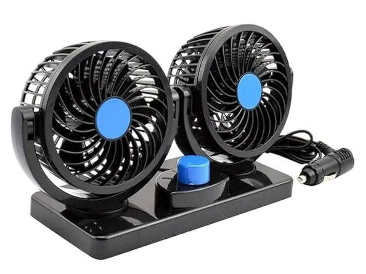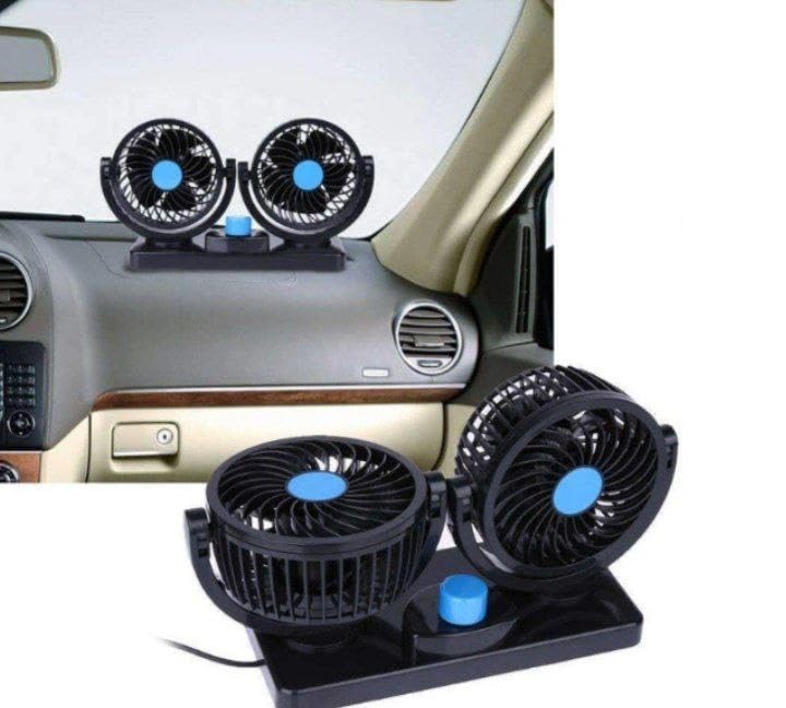 Generic - Dual Head Car Fan with 5 Blades – Powerful cooling with high speed and 360° rotation for optimal airflow distribution inside the car for all passengers easily and comfortably. (1 Piece)