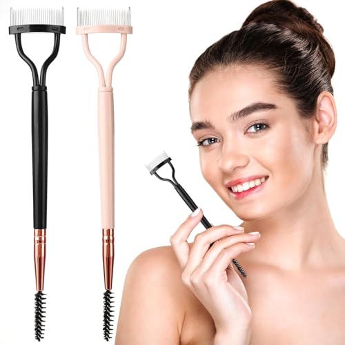 Generic - مشط حواجب مزدوج الرأس 2 في 1، أداة تشذيب احترافية لمكياج العين لفصل الرموش وإزالة تكتلات الماسكارا، متعدد الألوان - 1 قطعة