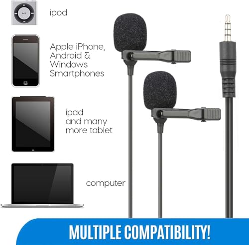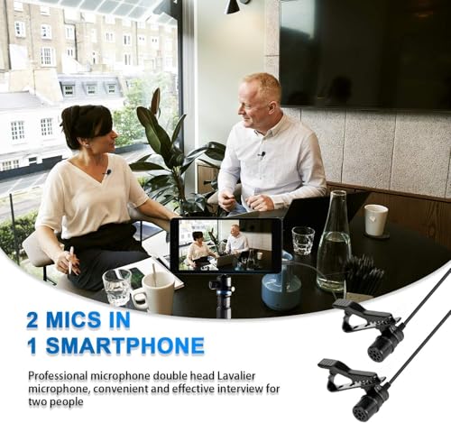 Generic - ميكروفون لافالير مزدوج الراس - ميكروفون احترافي متعدد الاتجاهات بمشبك لاجهزة ايفون واندرويد والكمبيوتر الشخصي ويوتيوب والمدونات الصوتية والمقابلات ومؤتمرات الفيديو