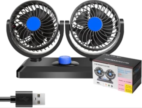 Generic - مروحة سيارة USB مزدوجة الرأس، مروحة تبريد لوحة القيادة قابلة للدوران 360 درجة مع تحكم في السرعة، أسود وأزرق