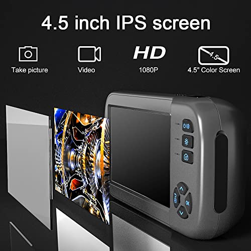 - 🍎[شاشة ال سي دي عالية الدقة مقاس 4.5 بوصة] يستخدم هذا المنظار شاشة ملونة عالية الدقة مقاس 4.5 بوصة ودقة 1920 × 1080 بكسل، مما يسمح له بالتحليل والكشف بسهولة أكبر، وعرض الصور عالية الدقة ومقاطع الفيديو في الوقت الفعلي في المجال الاحترافي. يمكن أن يساعدك على حل المشكلات بفعالية.