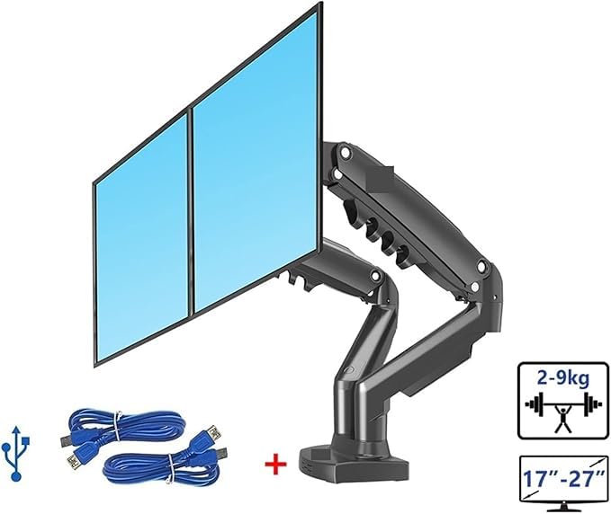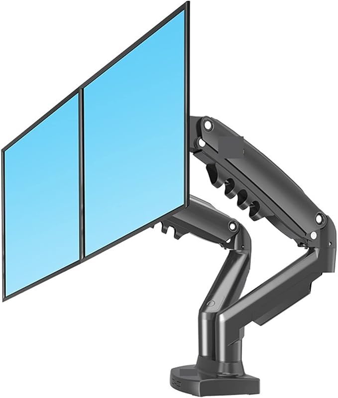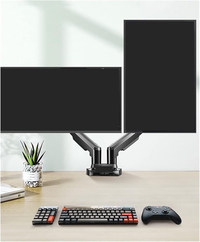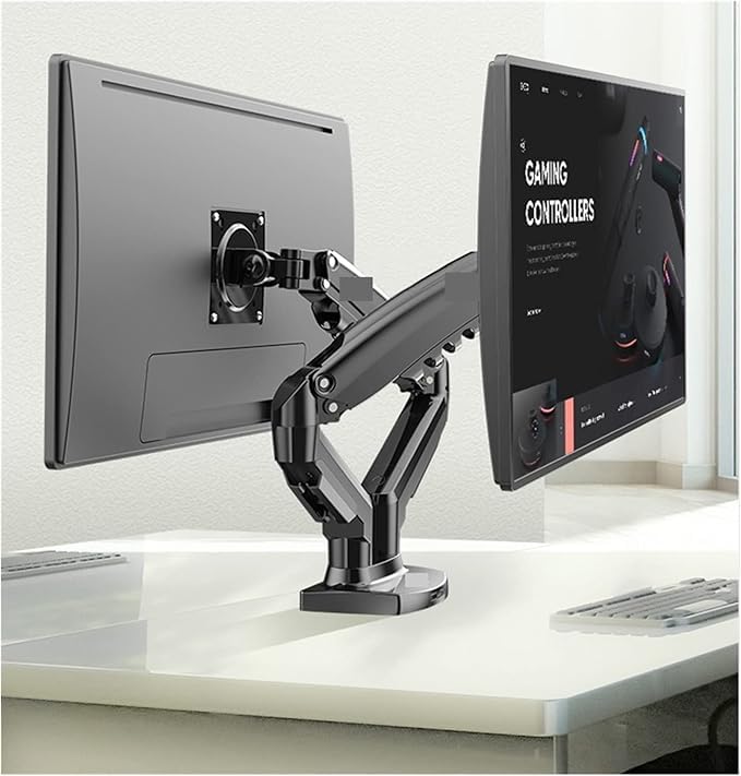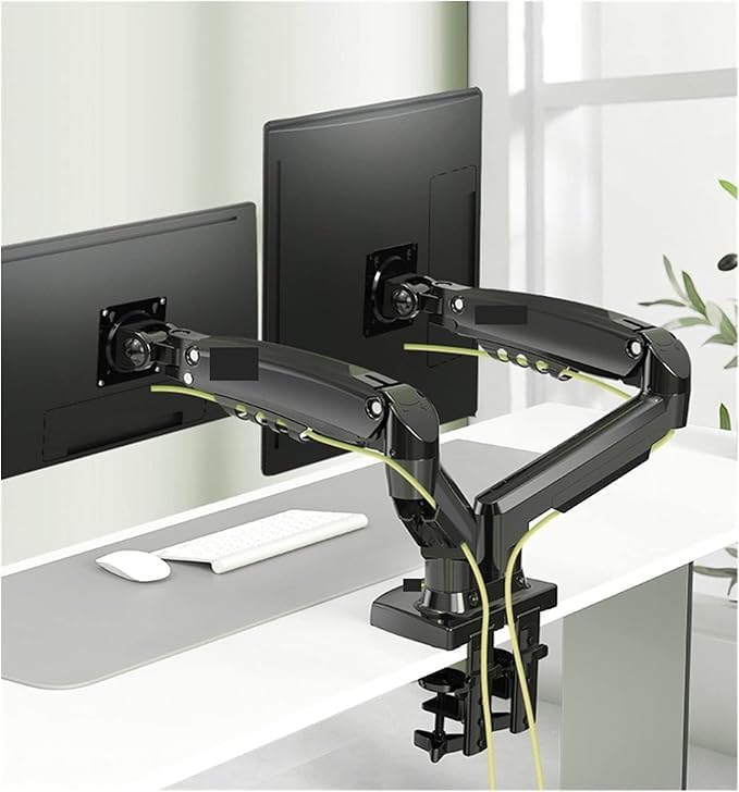 Generic - حامل شاشة مزدوج بذراع، تصميم سوستة غازية قابل للتعديل، حامل سطح مكتب مريح بلون أسود