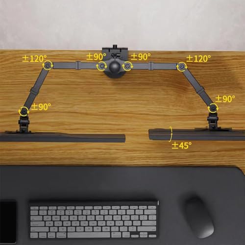 - 【حرر مساحة على مكتبك】 يرفع حامل الشاشة المزدوج للشاشات فوق سطح المكتب لتوفير مساحة أكبر للأشياء الأخرى مثل اللاب توب، والتابلت، والسماعات، ولوحة المفاتيح، والقرطاسية المكتبية.