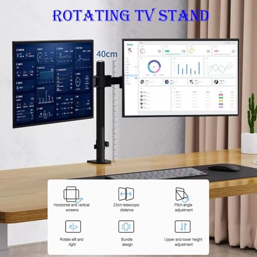 Generic - حامل مكتب مزدوج لشاشتي عرض مع أذرع قابلة للتعديل بالكامل. يدعم شاشتين بحجم يصل إلى 30 بوصة لكل واحدة. قابل للإمالة، التدوير، وقابل لتعديل الارتفاع. يستوعب حتى 8 كجم لكل ذراع.