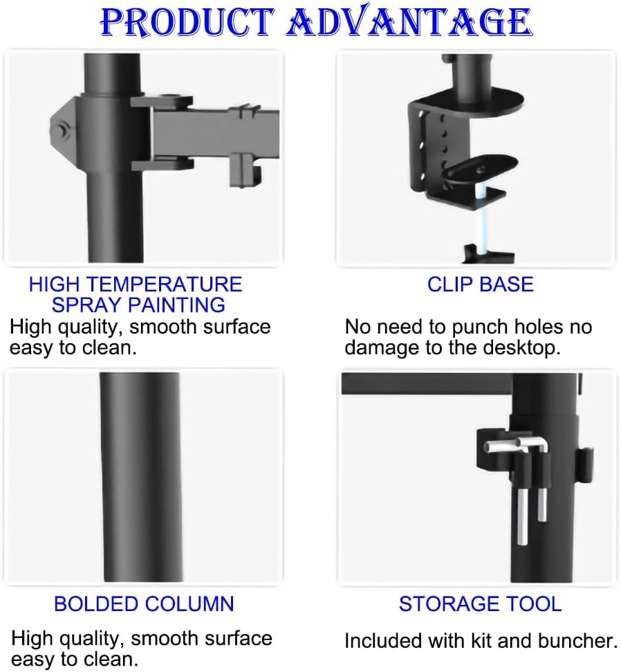 - 【سهولة التركيب】 يأتي مع جميع أدوات التثبيت، والأدوات، وتعليمات واضحة خطوة بخطوة للتجميع. يمكن إزالة لوحة التثبيت القابلة للفك بسهولة وتثبيتها على شاشتك. يمكن الانتهاء من إعداد حامل الشاشة هذا في 10 دقائق.