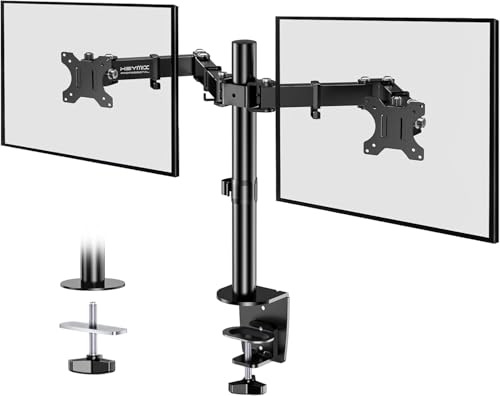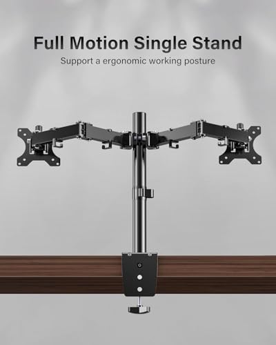 Generic - حامل شاشة مزدوج - حامل ذراع فيسا بارتفاع قابل للتعديل لشاشتين LCD مقاس 17-32 بوصة، تركيب مشبك على شكل حرف C وحلقة تثبيت