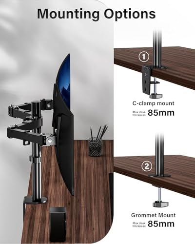 - دعم الشاشة المزدوجة: يحمل شاشتين لكفاءة تعدد المهام: ارتفاع قابل للتعديل: يحسن الوضع وراحة المشاهدة. خيارات تركيب مرنة: تركيب مشبك على شكل حرف C وحلقة تثبيت متوافق مع فيسا : يناسب 75 × 75 ملم و100 × 100 ملم