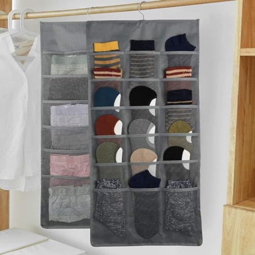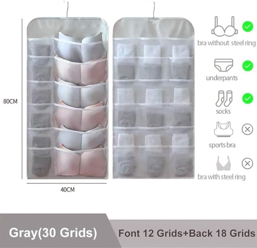 Generic - منظم خزانة قابل للتعليق على الوجهين، 30 جيب شبكي، شنطة تخزين من قماش اوكسفورد للملابس الداخلية، رمادي