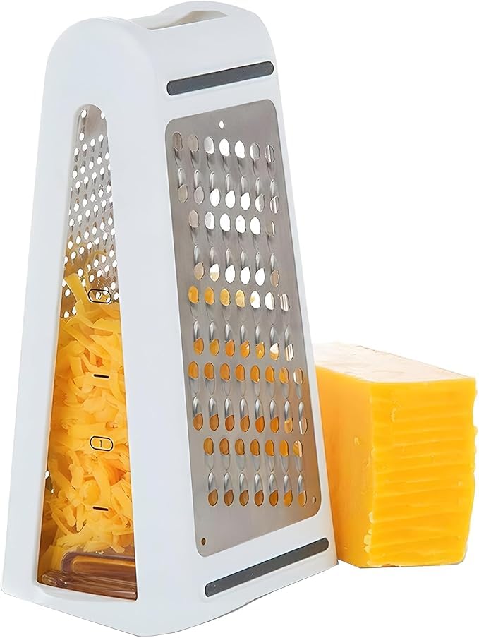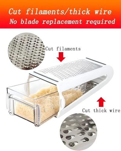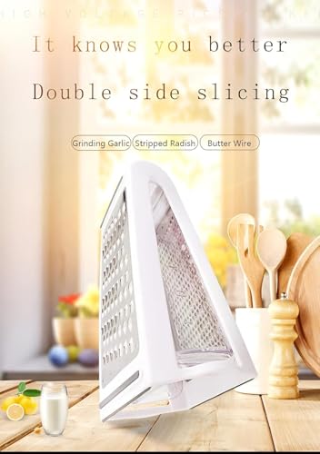 Generic - مبشرة جبن مزدوجة الجوانب من الستانلس ستيل تتضمن اداة تقطيع الخضروات والبارميزان سهلة التنظيف ومتعددة الاستخدامات للمطبخ والادوات المنزلية سعة 480 مل (ابيض)