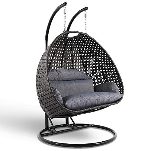 Generic - كرسي أرجوحة للاستجمام في الهواء الطلق وجلسات الفناء والاسترخاء في الحديقة، مقعد مزدوج للاستخدام الخارجي مع وسائد ليفية، مصنوع من الراتينج والزجاج والروطان