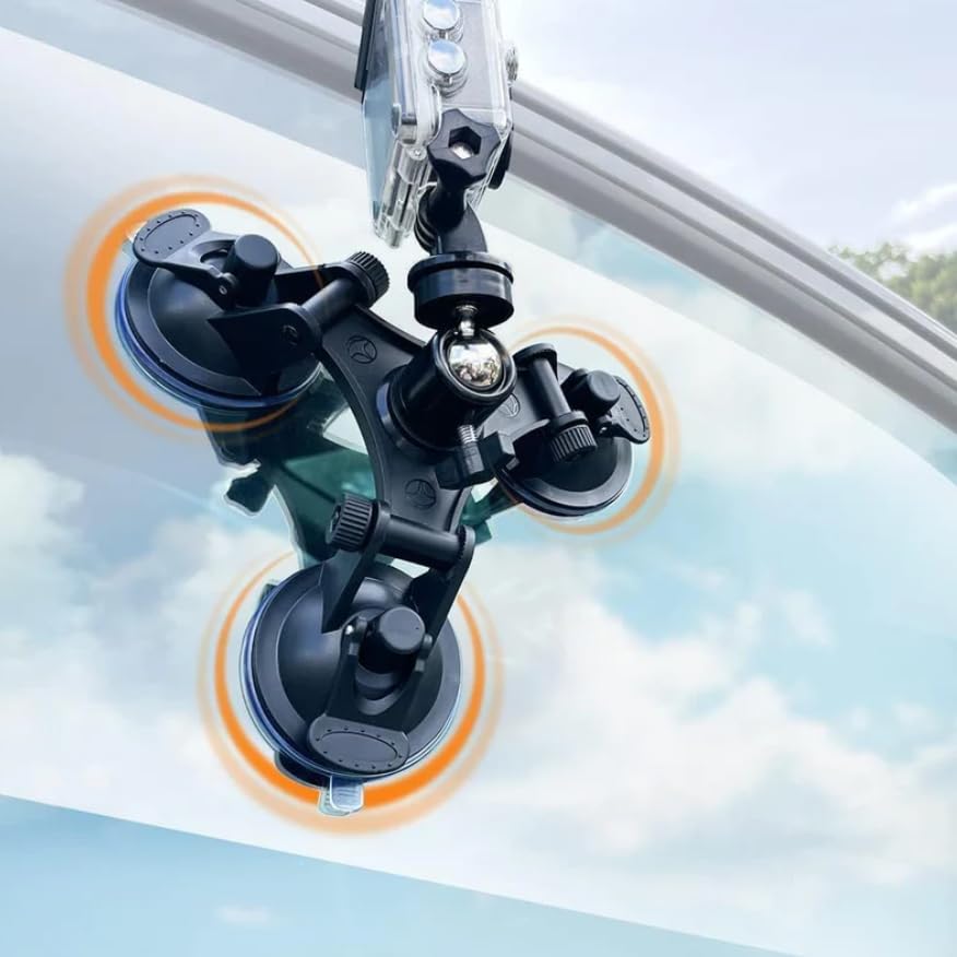Generic - حامل أكواب بقاعدة لاصقة مزدوج مع رأس كروي ثلاثي القوائم بزاوية 360 درجة