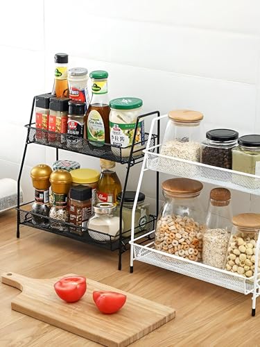 generic - رف تخزين مزدوج الطبقات - منظم طاولة متعدد الاستخدامات للمطبخ او طاولة الزينة، مثالي للتوابل والبهارات ومستحضرات التجميل، تصميم قابل للازالة لسهولة الوصول والتنظيف (35.5 × 14 × 33.5 سم)