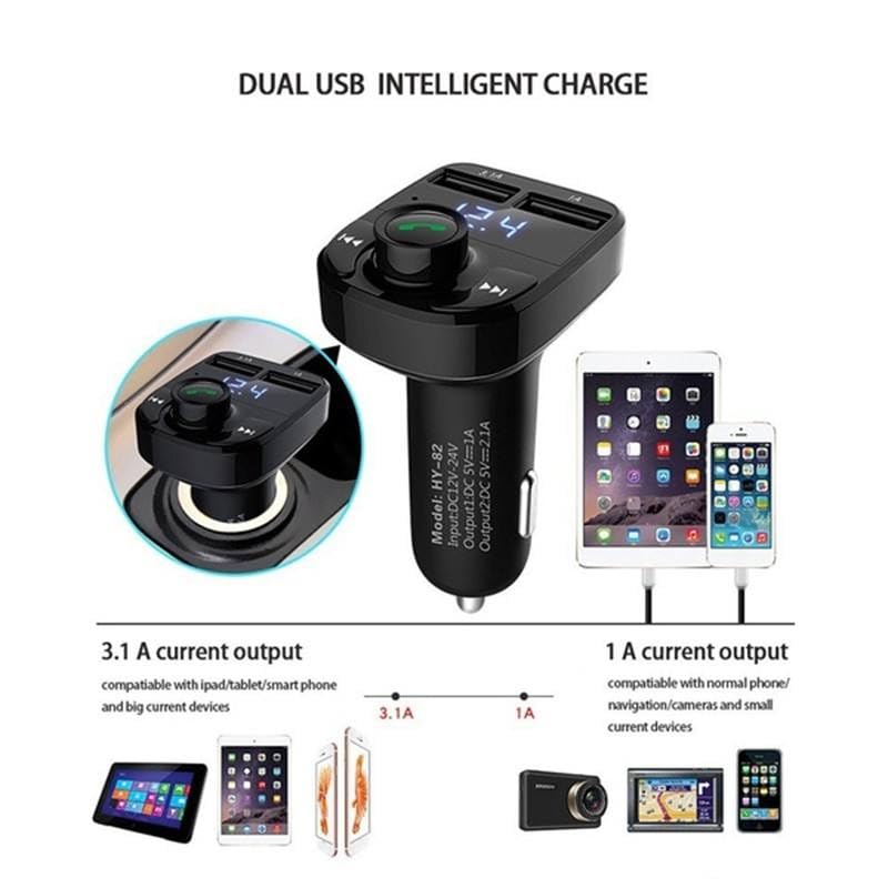 X8 - جهاز ارسال اف ام يعمل بالبلوتوث ومشغل MP3 لاسلكي ومحول راديو اف ام وشاحن سيارة لإجراء المكالمات بدون استخدام اليدين بمنفذين USB ويدعم بطاقة اس دي/مفتاح