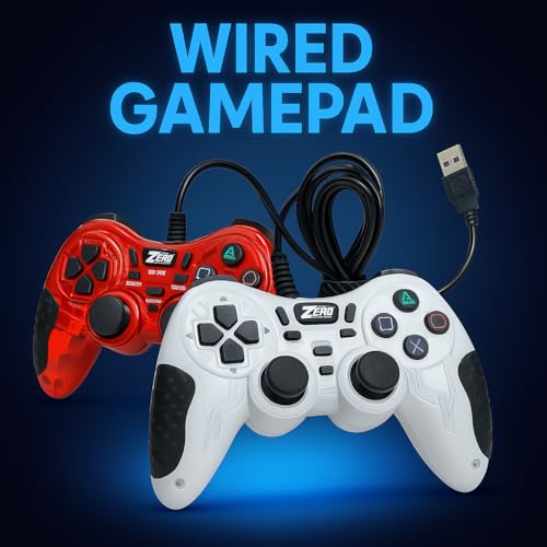 Generic - يد تحكم ألعاب فيديو من زي زيرو للكمبيوتر المكتبي، متصلة عبر USB، متوافقة مع الكمبيوتر واللابتوب وبلاي ستيشن 2 وأندرويد، مع ميزات الاهتزاز والتيربو والتصميم المريح، متعددة الألوان