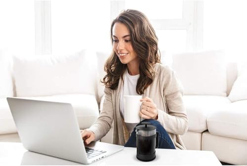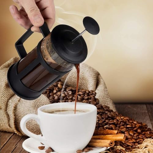 - ☕ماكينة تحضير القهوة الفرنسية هذه بسعة 11 اونصة/350 مل، بسعة صنع كوبين من القهوة الفرنسية الكلاسيكية. ماكينة تحضير القهوة هذه مناسبة للاستخدام في الحفلات وشاي بعد الظهر وأماكن الاسترخاء. نوصي بتنظيف وعاء القهوة بعد الاستخدام بوقت قصير لأن وعاء القهوة قد يتغير لونه إذا بقيت القهوة المطحونة في الوعاء لفترة طويلة. من الممكن غسل ماكينة تحضير القهوة الفرنسية يدويًا