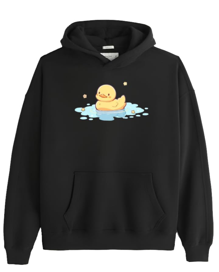Generic - سويت شيرت بغطاء للرأس بتصميم بطة لطيفة بلون اسود كاواي مقاس 10