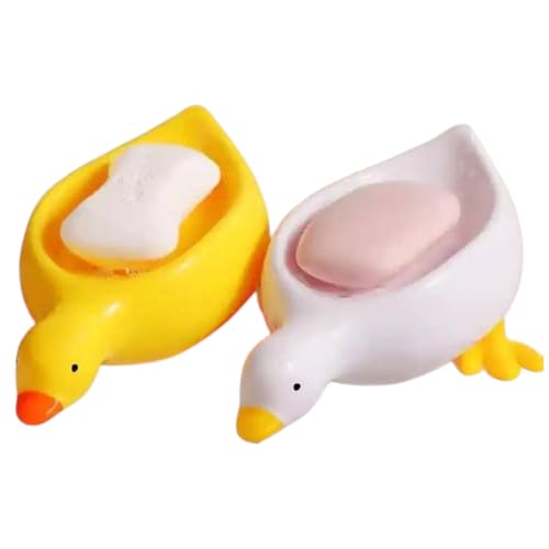 Generic - طبق صابون حمام على شكل بطة، ابيض واصفر، تصميم تصريف المياه، 20 × 12 سم، مجموعة من قطعتين