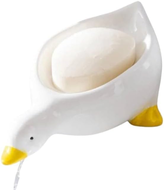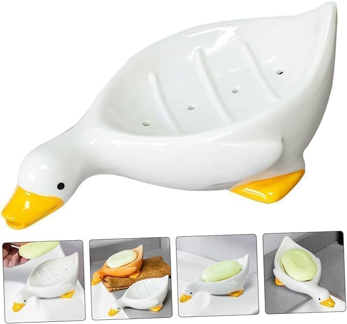 - ميزات التصميم: طبق صابون ساحر على شكل بطة باللونين الأبيض والأصفر، مما يضيف لمسة مرحة إلى ديكور حمامك