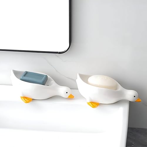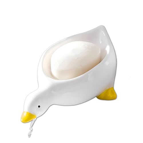 Generic - حامل صابون سيراميك على شكل بطة - منظم متعدد الاستخدامات للحمام والمطبخ مع تصريف للصابون والاسفنج والاكسسوارات على الحوض او رف الدش (قطعة واحدة، الوان متعددة)