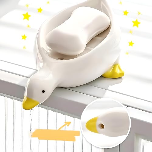 - مصنوع من السيراميك عالي الجودة، يقاوم حامل الصابون هذا على شكل بطة البقع والخدوش والاهتراء، ويحافظ على مظهره اللامع والأنيق لسنوات مع الحد الأدنى من الصيانة - مثالي لكل من أسطح الحمام والمطبخ.