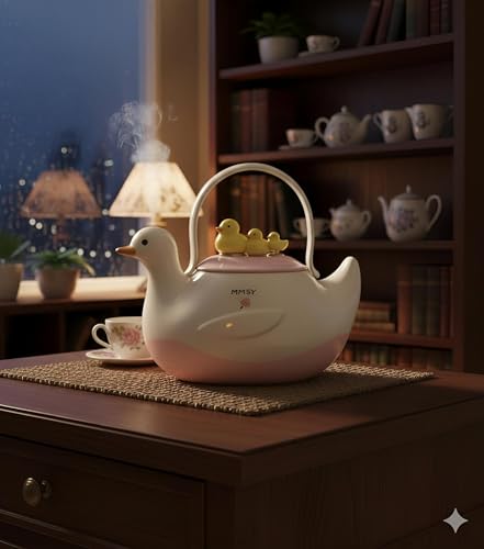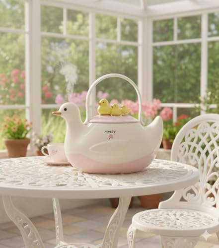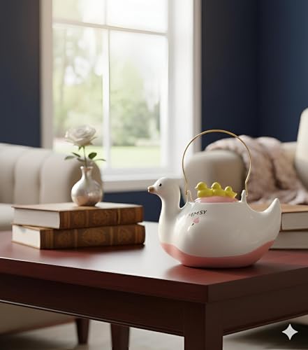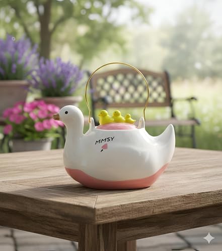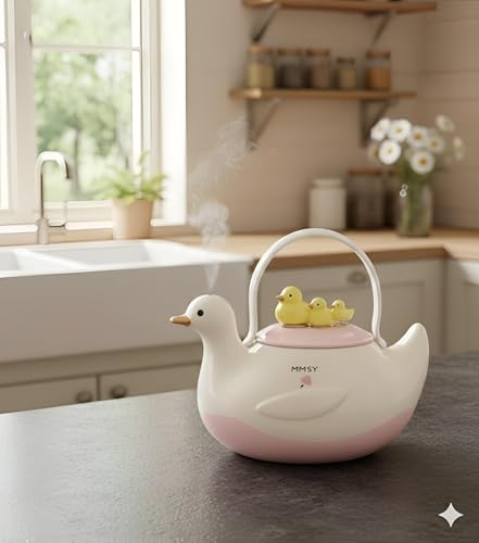 Generic - ثلاجة على شكل بطة - مقبض من الستانلس ستيل مزين بالذهب مع غطاء عليها فراخ صغيرة، سعة 2 لتر، تتحمل الحرارة، هدية مثالية للعروس