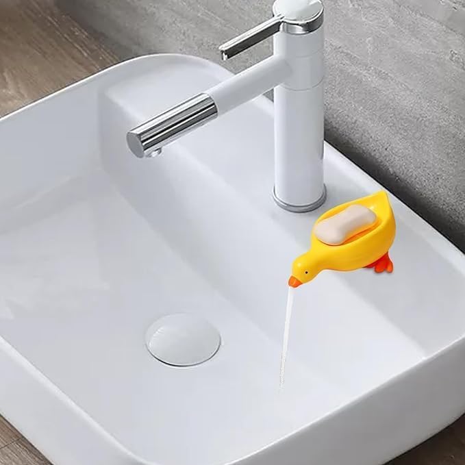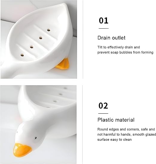 - التصميم: حامل صابون رائع على شكل بطة مع حواف مرتفعة للحفاظ على الصابون جافًا ومنع الانزلاق، متوفر باللونين الأصفر والأبيض