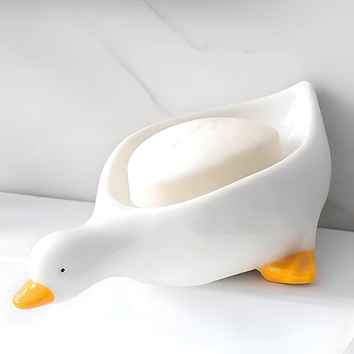 Generic - صينية صابون على شكل بطة - قطعة ديكور لطيفة للحوض او الحمام، متوفرة باللون الابيض والاصفر، 8 × 13 سم، مقاومة للماء (اختيار اللون حسب الصورة)
