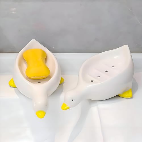 Generic - صبانة بتصميم بطة رائعة مزودة بفتحات تصريف متطورة، تضمن المتانة والقوة في التصميم؛ حامل سهل التنظيف يحافظ على جفاف الصابون ويضيف لمسة ديكورية (ابيض)