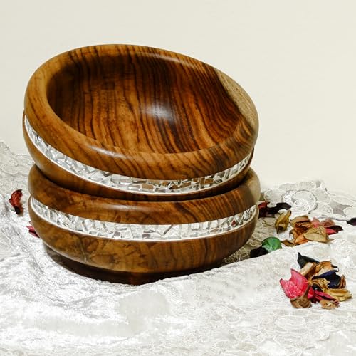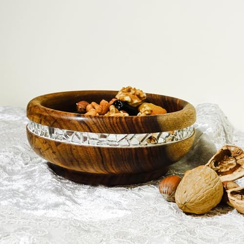 Duckly Home Decore - وعاء خشبي كبير مصنوع يدويًا، قطر 15 سم من داكلي هوم ديكور، بني/فضي