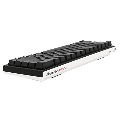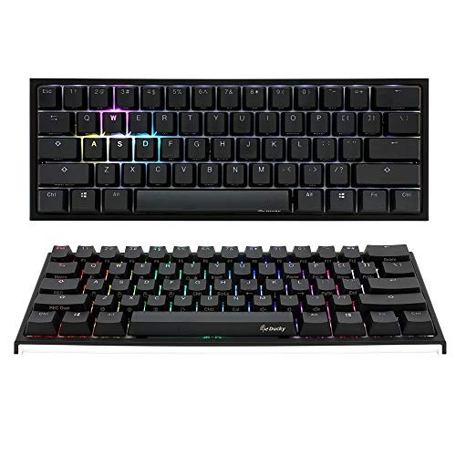 Ducky - كيبورد صغيرة ون تو من داكي تشانل مزودة بمفاتيح شيري باضاءة RGB LED زرقاء ابيض بمفتاح ازرق حروف انجليزية اغطية مفاتيح PBT سلسلة دبل شوت DKON1861ST-SUSPDAZT1 USB