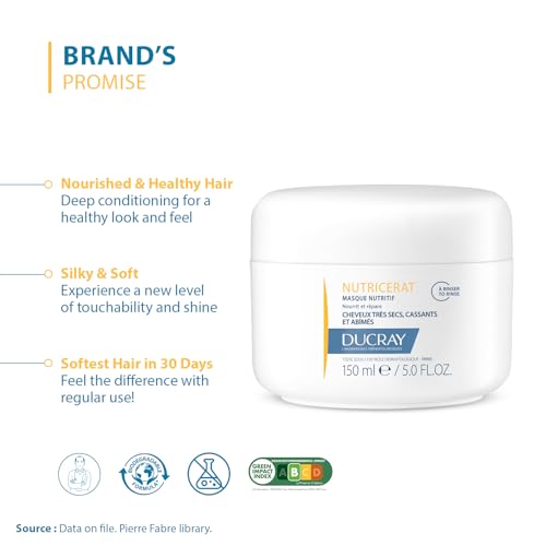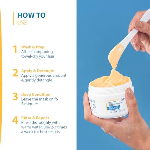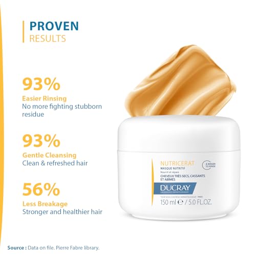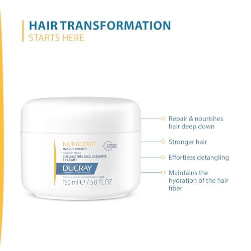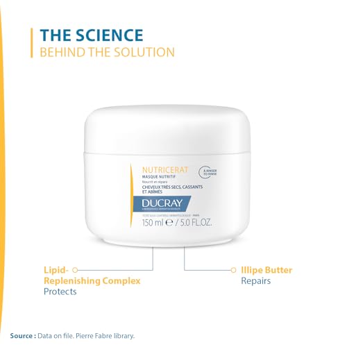 Ducray - قناع من دوكراي للشعر الجاف والمتضرر لإصلاح وتغذية الشعر، يحتوي على زبدة الإيليبي ومركب ليبيد مجدد، مصلح ومغذي ومزيل للتشابك، 150 مل