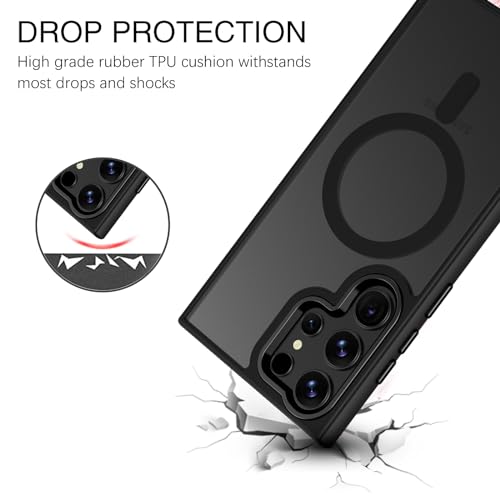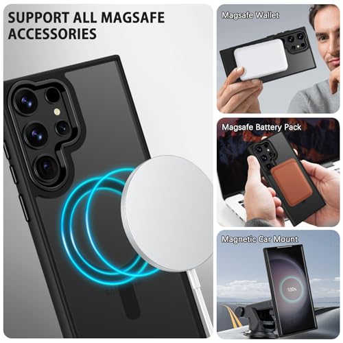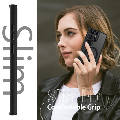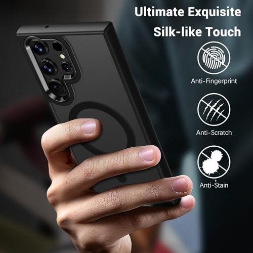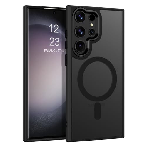 DUEDUE - ديوديو جراب مغناطيسي لموبايل سامسونج جالاكسي S23 الترا [متوافق مع ماج سيف] غطاء حماية كامل شفاف غير لامع مقاوم للصدمات ومضاد للخدش S23 6.8 بوصة اسود