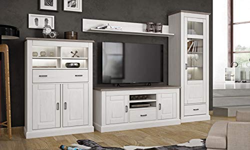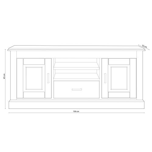 duehome - دولاب تلفزيون مع بابين ودرج واحد مناسب لغرفة المعيشة أو غرفة المائدة، موديل ارما، يتميز بلمسات نهائية من صنوبر الاندرسون ولون رمادي، الأبعاد: الارتفاع 150 سم × الارتفاع 65 سم × الجزء السفلي 52 سم