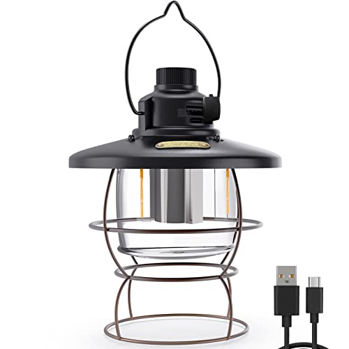Dufuso - مصباح تخييم ليد قابل لإعادة الشحن من دوفوسو، مصباح تخييم قابل للتعتيم - 4800 مللي أمبير في الساعة، مصباح تخييم عتيق محمول مقاوم للماء، للتخييم وصيد الأسماك وإيقاف التشغيل والطوارئ