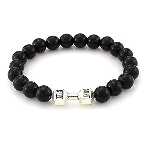 Other - سوار دمبل مصنوع من خرز اللؤلؤ الطبيعي للرجال بلون اسود وفضي -SL12-2