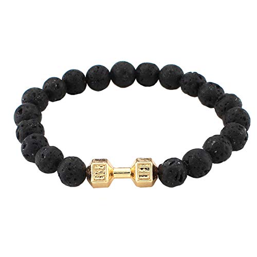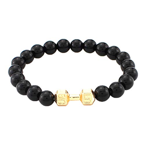 Other - اسوارة دامبلز حجر طبيعي مزين بالخرز -اسود وذهبيSL12-1، للرجال