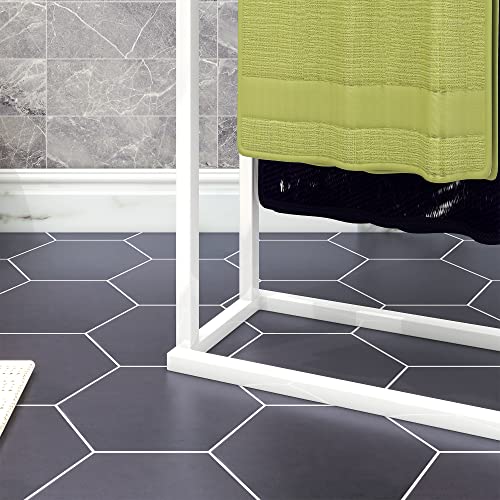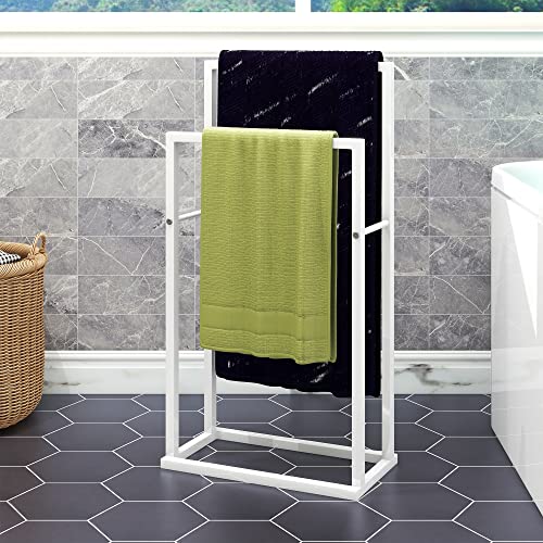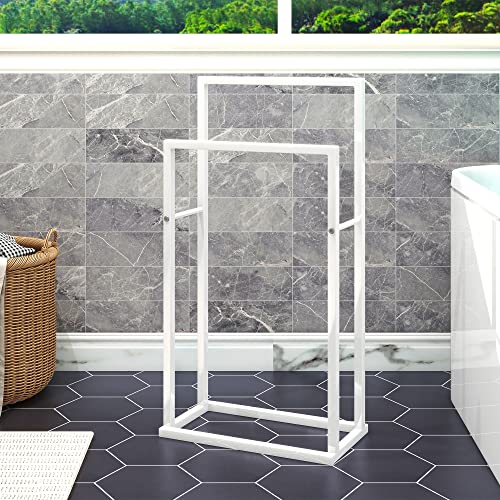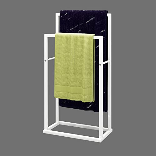 DUMEE - حامل فوط قائم بذاته بطبقتين معدني من الكروم من دومي، حامل فوط سلم مطلي مضاد للصدأ، منظم ملحقات الحمام، تخزين الحمام وفوط اليد، فوطة للتنظيف، أبيض