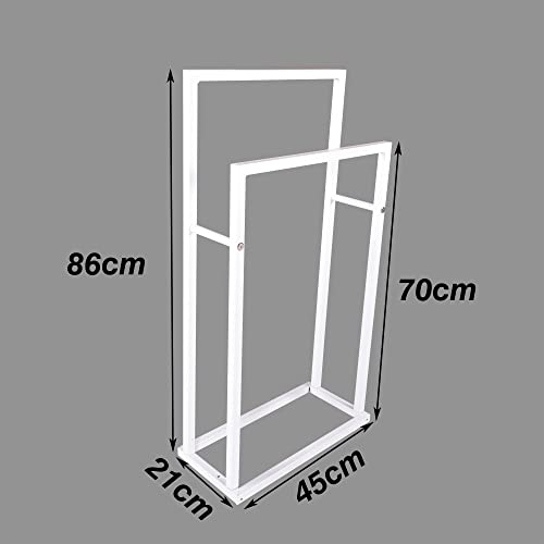 - المقاس: 45 × 21 × 86 سم (طول × عرض × ارتفاع)، مع حامل بقضيبين للمناشف. يمكنك تعليق المناشف الجافة والمبللة بشكل منفصل وعدم لمس بعضها البعض. إنه منظم حمام رائع لتوفير المساحة!