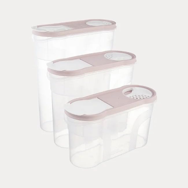 dunya - مجموعة تخزين حبوب وبقوليات من دنيا، وردي، 3 قطع: خالية من مادة البيسفينول أ بسعة من 1.4 إلى 2.9 ل.