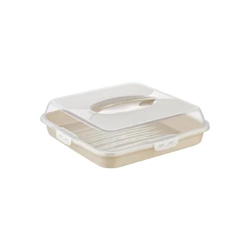 dunya - حامل كيك مربع بيج 33×33×9 سم من دنيا خالي من مادة بيسفينول أ مع غطاء قفل بمشبك