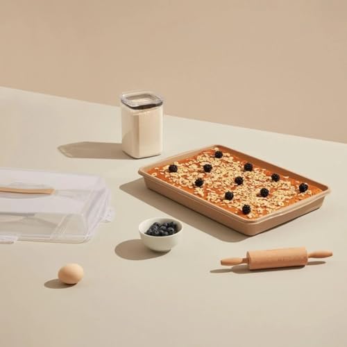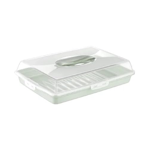 dunya - حامل كيك بلاستيكي من دنيا، بيج، مقاس 40 × 30 سم: خالي من مادة بيسفينول أ مع غطاء قفل بمشبك