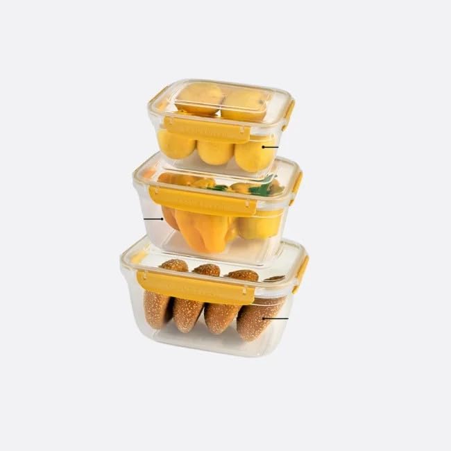 dunya - مجموعة تخزين بلاستيكية لوك اند فريش من دنيا، أصفر، 3 قطع: خالية من البيسفينول أ، 1.8-5 لتر