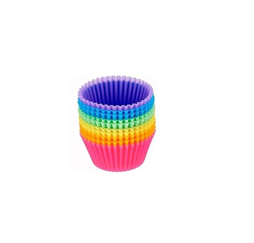 Duomama - 12 حافظة كبيرة من السيليكون للكب كيك والمافن من دوماما، اكواب خبز غير لاصقة قابلة لاعادة الاستخدام للكيك والبودينغ، قالب جيلي كيك 7 سم، سهلة التنظيف ومرنة ومتينة ومقاومة للحرارة